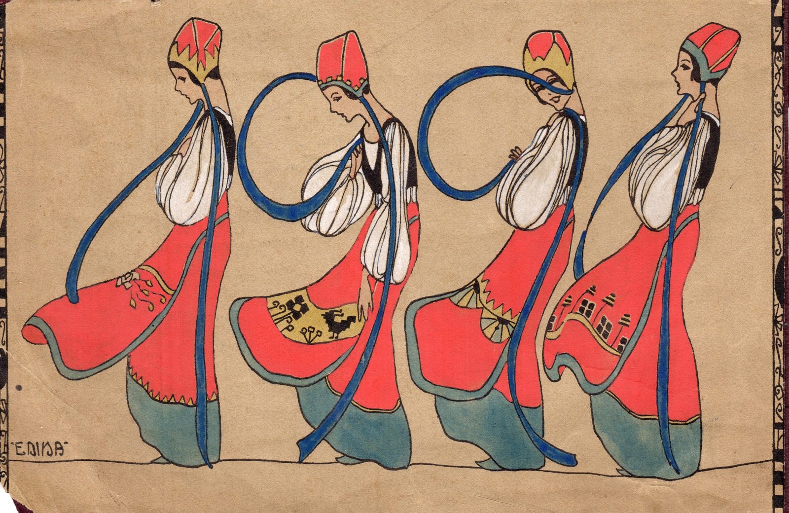 Edina Altara, Disegno originale per calendario, 1920, tempera a colori su cartoncino, 14,5x22 cm.
