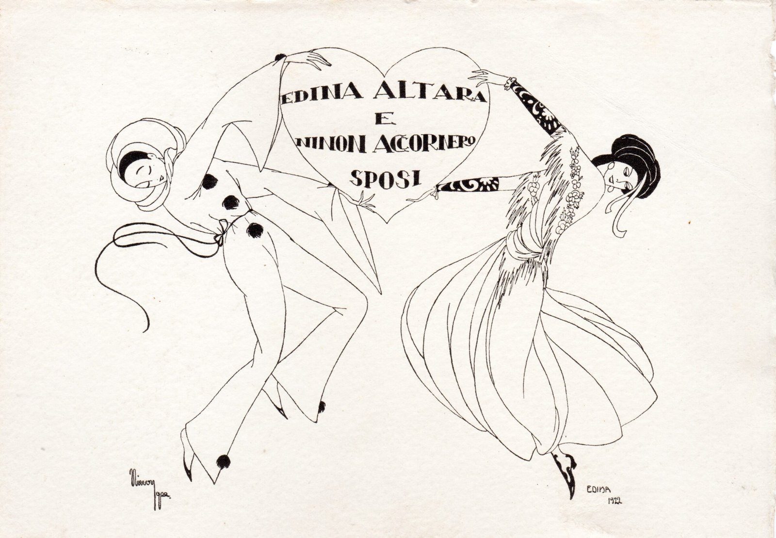 Vittorio Accornero e Edina Altara, Partecipazione di nozze, 1922, stampa, 12,2x17,3 cm.