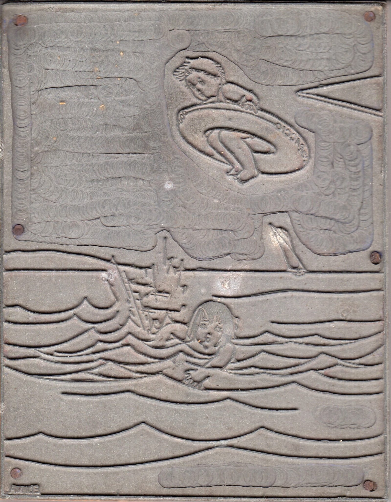 Edina Altara, Cliché di stampa per l'illustrazione di copertina della rivista "L'educatore della gioventù. Mensile illustrato per i fanciulli", n. 7, luglio 1929, lastra di zinco su base di legno, 11,5x9 cm.