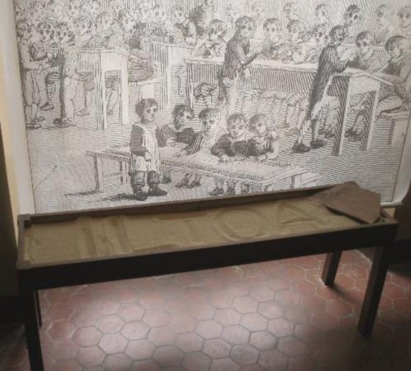 Immagini d’epoca, memorie, materiali ed esercizi pratici, individuali e a squadre, su lavagnette e banco a sabbia, consentiranno ai partecipanti di calarsi progressivamente tra i banchi di scuola dell’epoca, di sperimentare modalità didattiche di oltre due secoli fa e di conoscerne i principali animatori.