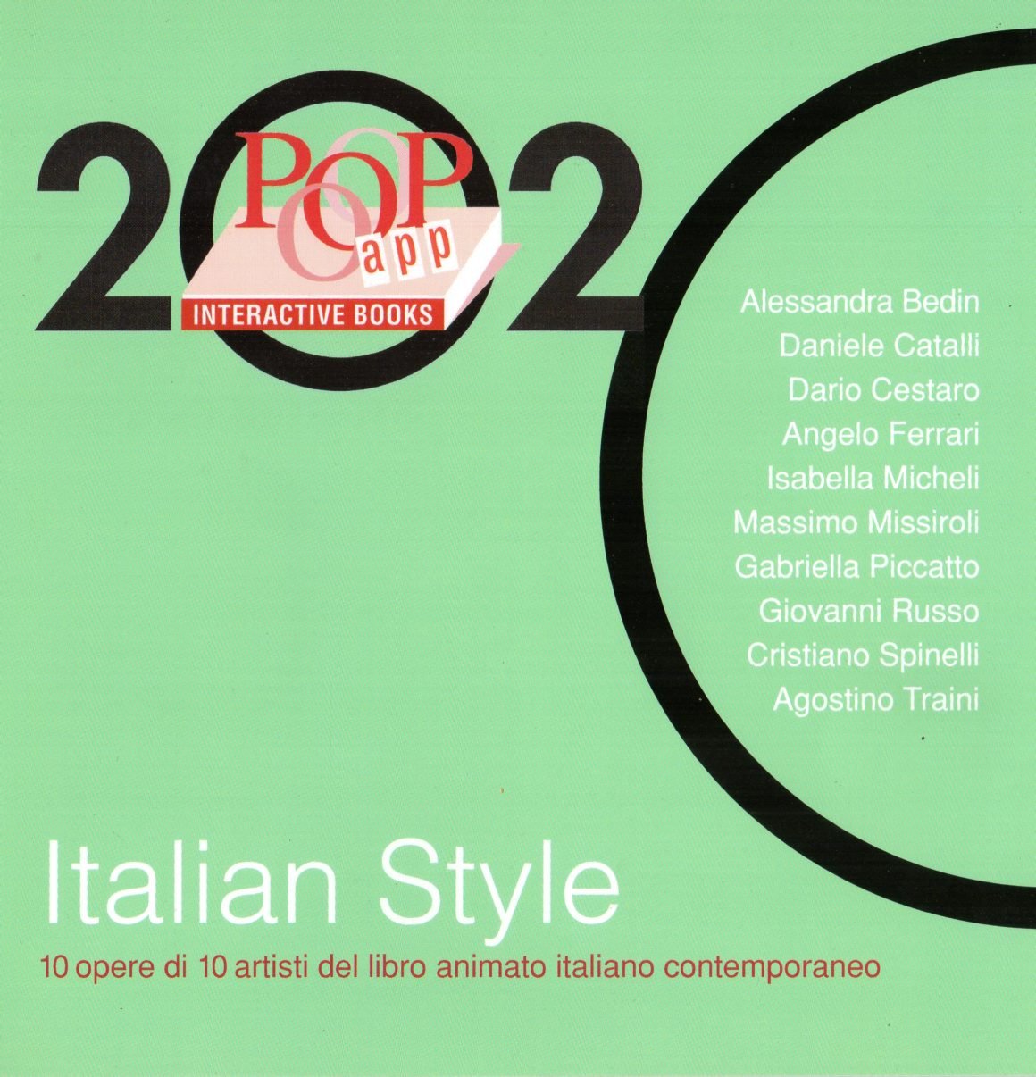 Catalogo della mostra “Italian Style. 10 opere di 10 artisti del libro animato italiano contemporaneo” (MUSLI, 28 febbraio – 30 giugno 2020). La pubblicazione dedica una sezione a ciascuno dei dieci artisti (Alessandra Bedin, Daniele Catalli, Dario Cestaro, Angelo Ferrari, Isabella Micheli, Massimo Missiroli, Gabriella Piccatto, Giovanni Russo, Cristiano Spinelli, Agostino Traini): ogni sezione è costituita da una breve presentazione biografica dell’artista (in lingua italiana e inglese) e una scheda dell’opera in esame.